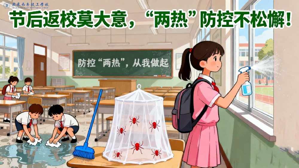 @南粤人 节后返校莫大意,“两热”防控不松懈!广东南粤技工学校广东南粤技工学校2025年10月12日 08:30广东“两热”防控中秋国庆假期落幕,同学们已经重返校园。但别忘了,初秋的广东依旧闷热潮湿,正是埃及伊蚊和白纹伊蚊活跃的高峰季。登革热、基孔肯雅热(简称“两热”)作为通过蚊虫叮咬传播的急性传...