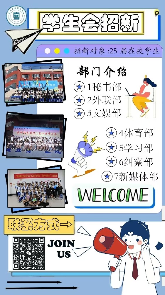 学生会、社团联合会招新啦 | “新”之所向,就差你了!广东南粤技工学校广东南粤技工学校2025年09月09日 10:55广东01学生会各部门简介校学生会是在学校党支部领导下、团委指导下的主要学生组织,是学校联系广大同学的桥梁和纽带。我们以“全心全意为同学服务”为宗旨,通过开展有益于同学成长成才的学习、...