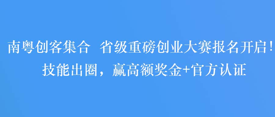 南粤创客集合 省级重磅创业大赛报名开启!技能出圈,赢高额奖金+官方认证