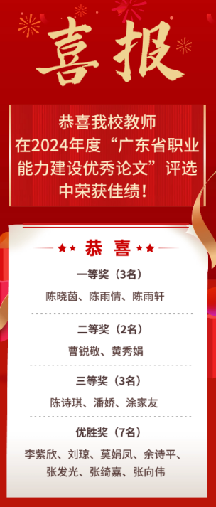 【示范引领】匠心耕耘,硕果芬芳!恭喜我校教师在2024年度“广东省职业能力建设优秀论文”评选中荣获佳绩!