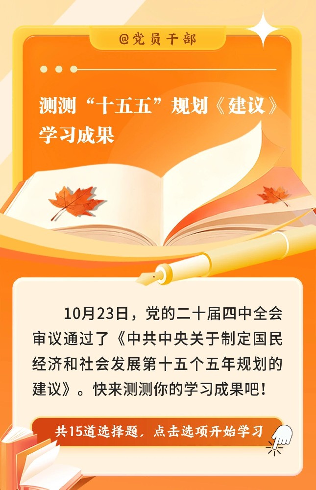 转载文章 | @党员干部!来测测“十五五”规划《建议》学习成果