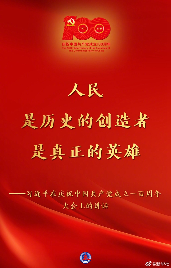 习近平说,人民是历史的创造者,是真正的英雄。我代表党中央,向全国广大工人、农民、知识分子,向各民主党派和无党派人士、各人民团体、各界爱国人士,向人民解放军指战员、武警部队官兵、公安干警和消防救援队伍指战员,向全体社会主义劳动者,向统一战线广大成员,致以崇高的敬意!向香港特别行政区同胞、澳门特别行政区同胞和台湾同胞以及广大侨胞,致以诚挚的问候!向一切同中国人民友好相处,关心和支持中国革命、建设、改革事业的各国人民和朋友,致以衷心的谢意!