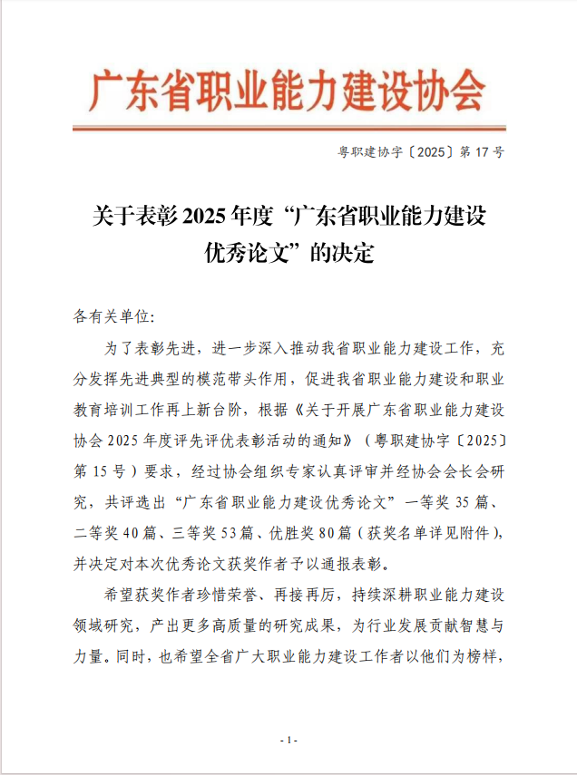 【喜报】恭喜我校教师在2025年度“广东省职业能力建设优秀论文”评选中斩获佳绩!